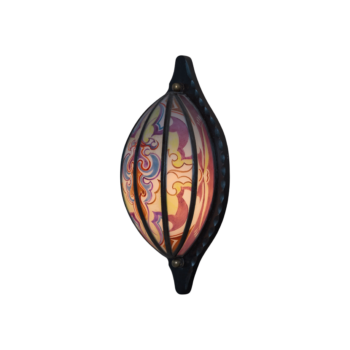This majestic lamp, with its four elegantly curved arms, is a true testament to the exceptional craftsmanship of its era. Constructed from a stunning combination of hammered copper and patinated bronze, it exudes a rich, timeless appeal. The enameled glass, which has been expertly bent twice to enhance its elegance, features an intricate pattern with a stylized tiger—an exquisite and unique detail that showcases the pinnacle of artistry in glasswork.