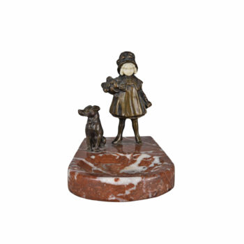 Behold the exquisite and whimsical clock crafted by the renowned French designer, Paul Silvestre. Adorned with the distinguished foundry mark of Susse Frères, this masterpiece is a stunning example of Art Deco design. The clock features a faun and a goat, symbolically pushing against the timepiece, offering a profound and delightful representation of the passage of time. This exceptional piece, estimated to date back to around 1920, is a testament to timeless elegance and charm, blending artistry with function in a way that captivates and endures.