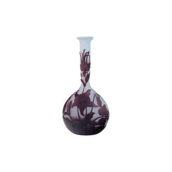 This Rozenburg eggshell vase, created in 1909 by Sam Schellink, features a delicate painting of a purple flower. The quality of the artwork is exceptional, with the rich purple tone adding to the piece’s elegance. Standing at 18 cm (approximately 7.1 inches) in height, this vase exemplifies the pinnacle of Art Nouveau design.